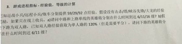好吧,这仍然是一道计算题,从这道题看来呢,出题老师还是相当不严谨,因为除了题目中提到的击杀/塔/峡谷先锋/大龙的经验,且只在线上收兵,这不是还有基兰能够获得额外经验值吗?(你们要珍惜和助手哥互动的时间,说不定哪天助手哥就去同济大学当老师了)