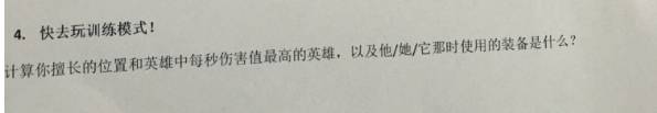 终于是一道实践题了,大家可以赶紧到训练模式里多用几个英雄试一试,看看哪个伤害的秒伤最高。不过要注意啊,训练模式只有新客户端里才有。
