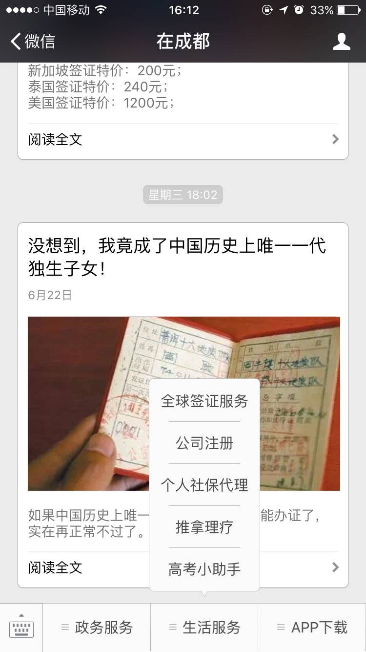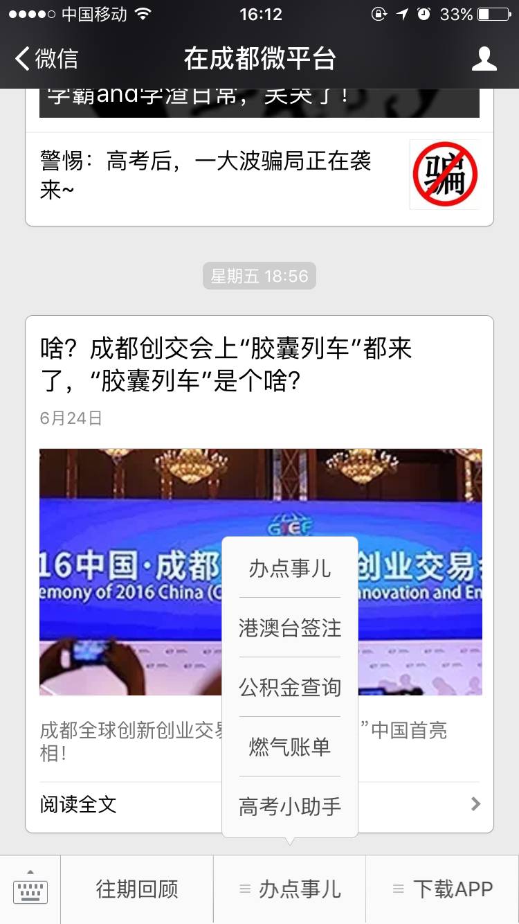 微信“在成都”服务号、“在成都”订阅号均可使用该功能,服务号在“生活服务”栏目,订阅号在“办点事儿”栏目。