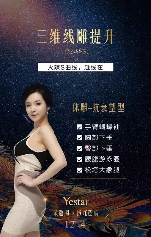 塑形体雕:祛蝴蝶袖、提胸翘臀、私密紧致