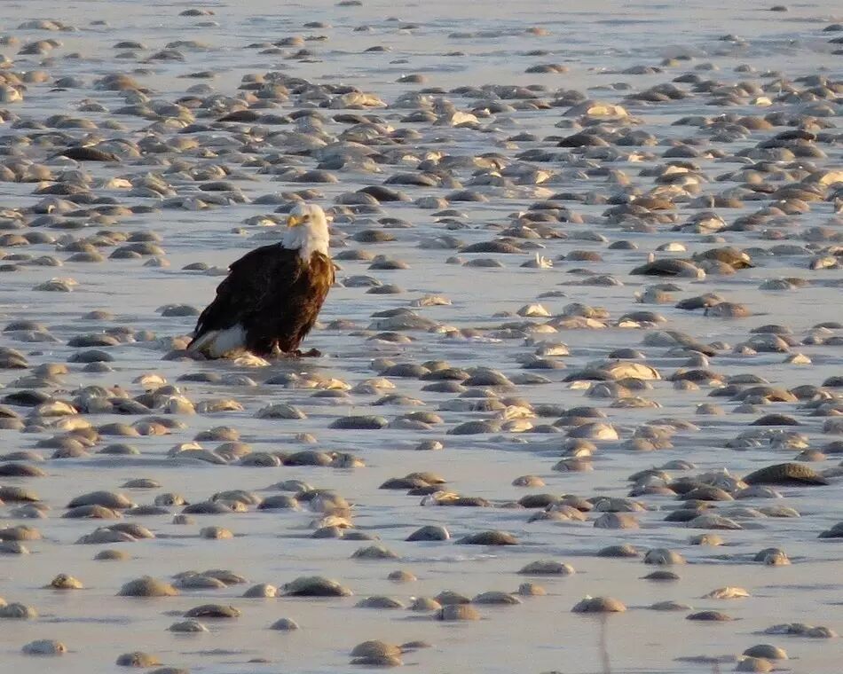 冰冻的鱼也吸引来了许多禽类,欲一饱口福。