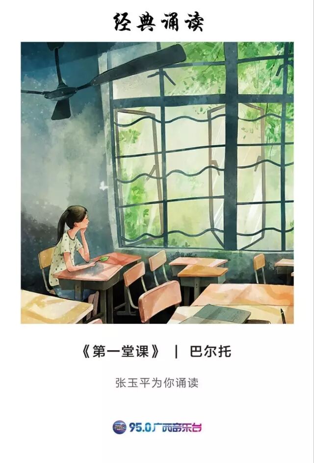 FM950《经典诵读》,我们一起来听巴尔托的诗《第一堂课》,由广西电视台主持人张玉平为您诵读。