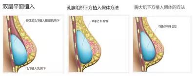 将假体置入胸大肌浅层乳腺组织下,手术时间短,损伤小,隆乳位置外观形态及触摸感均很自然,但此种方法不太适合乳腺及皮下组织稍薄的女性。