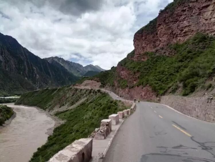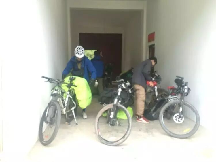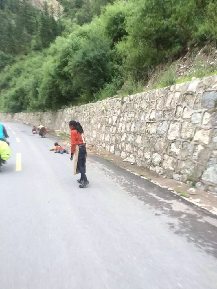 昨天香肠的辐条断了三根,早上起来吃了点东西就和教练两个人一路杀到昌都,120公里,用了6个小时,中间休息时间一个小时,昌都没有单车店,没有修单车的地方,不得已,只能用醒的备用辐条给改成直拉辐条。今天修了一辆断了三根辐条的车子,给另一个队伍修了后指拨。上了317几乎每天都在修理单车,处理各种问题,我也是醉了! 今天全程120公里柏油路面,起伏路,下坡比较陡,一定要慢,今天我的一个队友就摔倒了,幸好没伤到骨头,只是肌肉拉伤,万幸!妥坝到昌都路段,两旁的岩、沙土不稳,危险路段一定要快速通过,今天另一个队伍就被落石击中头部,幸好有头盔缓冲,人没事,就是头盔被砸了个坑。今天的狗比较懒,一路上遇见的大多在睡觉,没睡的也不理你。