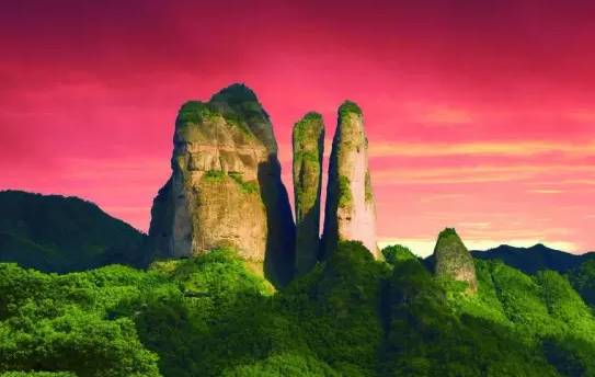 以奇峰怪石、古洞石室、飞瀑流泉称胜