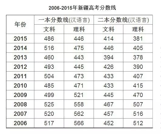 大家先来看一下新疆历年高考分数线