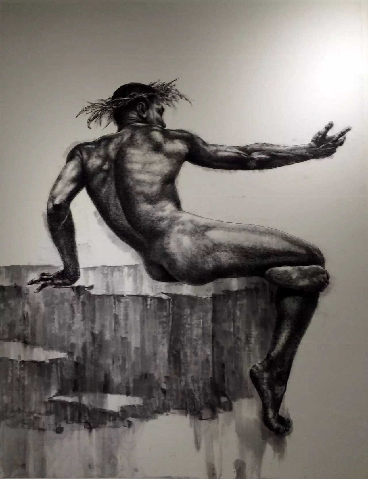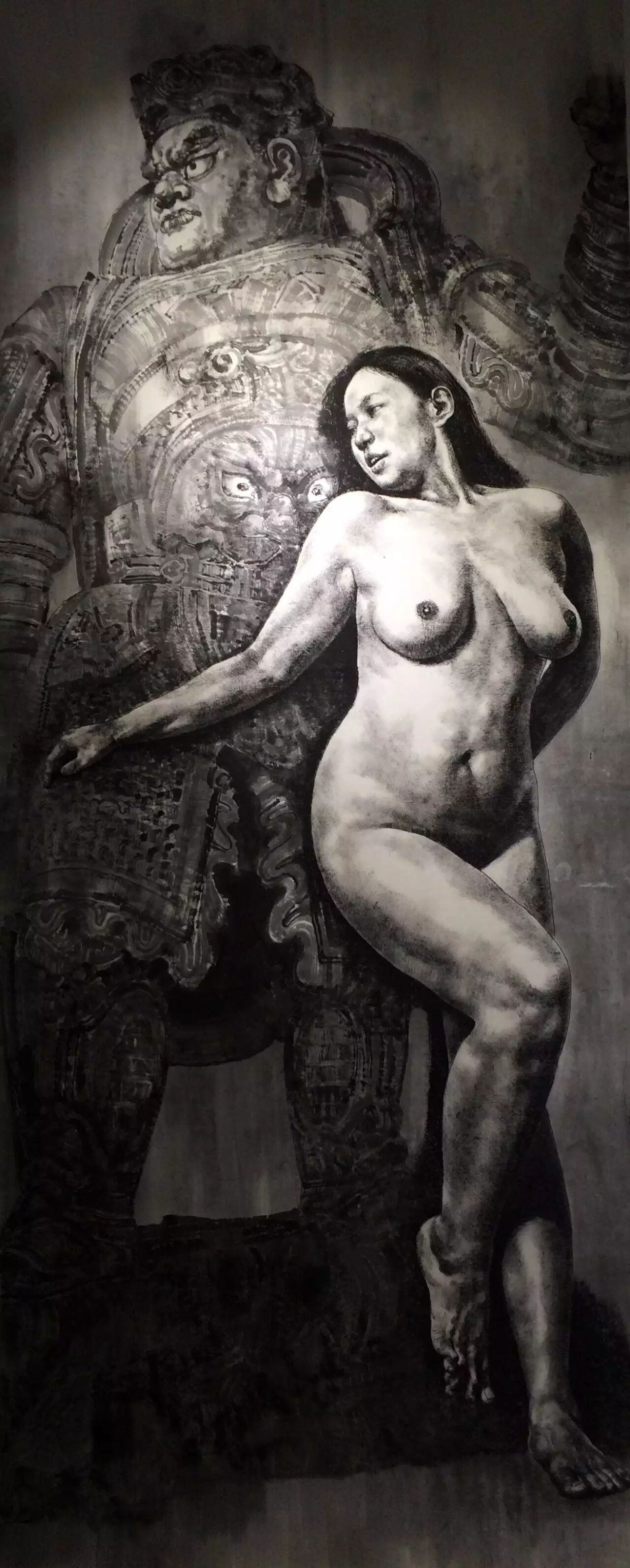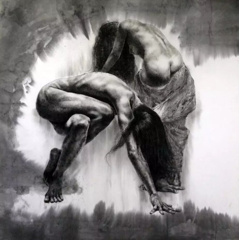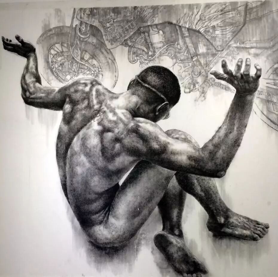 在画家的视野中,图式才是真正绘画的本体。我们乐见那些在笔墨里寻找聊以自慰的才情,却难以触碰内心那根紧绷的神经而得以激情般的快感。说到底,绘画是关于人与自然界面中相互依存、相互对立的的命题,是描写阴沉的低云覆盖下看平静的大海,是铺叙悬崖上映照孤月的苍茫,是记录沉寂了持久旷日的灵魂发出的酣畅淋漓的呼唤。这样的瞬间,被批评家表述为艺术领域,尤其是造型艺术诸如绘画、雕塑的至美的高度。它需要艺术家强大的内心去建立一个更复杂的二元世界,并以恰当准确的艺术语言,给自己以给力的支撑。这是一个严格意义上古典主义的造型范畴,在这里,侯震已经作出了他应有的判断。强大的视觉冲击,成为我们鲜见的却又颇感亲近的不同寻常的形式。无需给他更多的赞美,沉睡于大地深处的至美的躯体将被画家雄厚的笔触唤醒,涅槃为智慧、收获、幸福诸女神;紧绷的肌肉,颤抖的筋骨,伴随引擎的轰鸣,我们猜想,这样的蓄势待发,是战士阵前默默的誓言么,抑或是摆脱了痛苦的羁绊转而对未境的渴求。