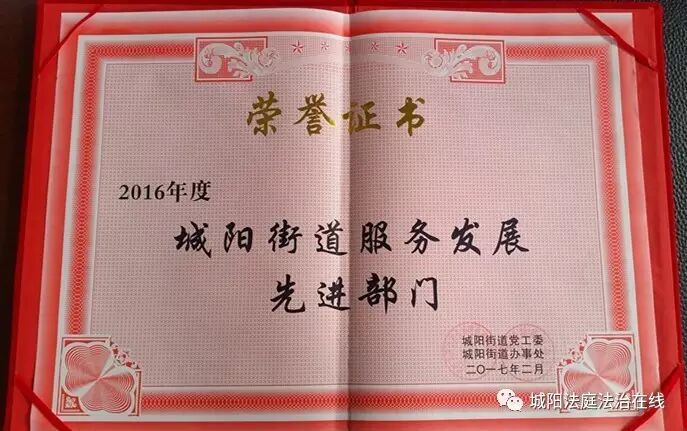 2017年2月6日,城阳街道召开总结表彰暨“革除障碍、转变作风、激情创业”新一轮解放思想教育实践活动动员大会,城阳法庭被表彰为服务发展先进单位。