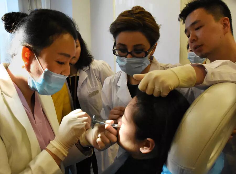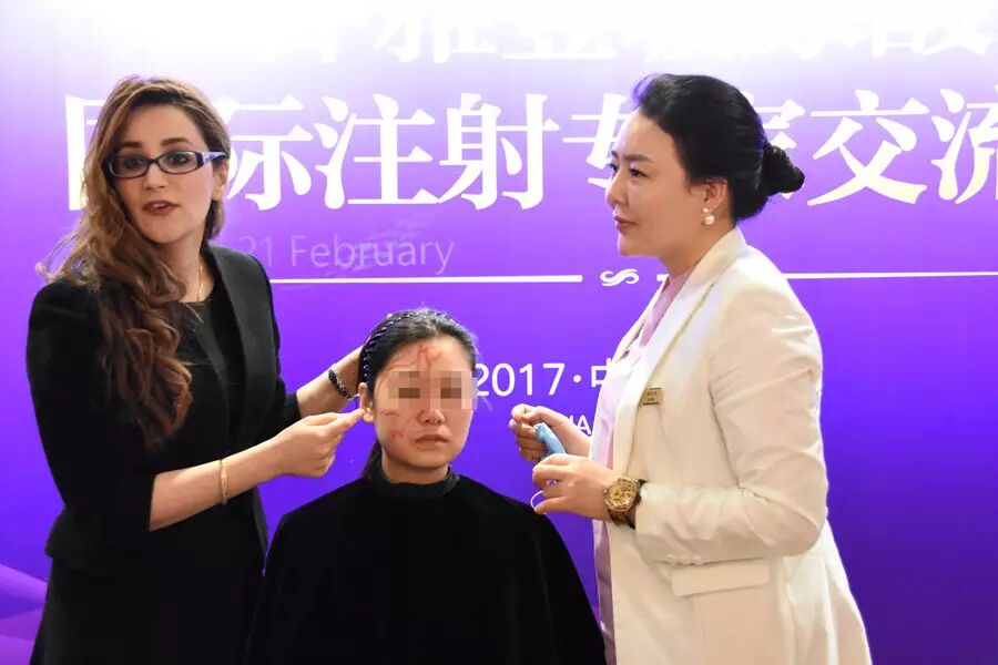 面部评估环节:Dr Souphiyeh Samizadeh对自愿者进行了全面部的整体评估,并精确的分析了面部神经血管的走向, 解释了乔雅登玻尿酸对面部填充塑性、提拉紧致的治疗原理。在面部评估的同时,本院专家还与Dr Souphiyeh Samizadeh就临床注射时针对不同情况求美者的注射点位选择变化进行了经验分享。