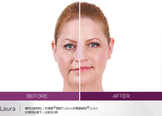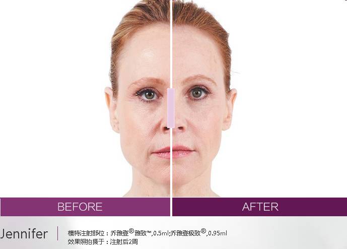 乔雅登是粘稠性、凝胶状液体,浓度高,柔顺平滑,因交联度大,注射后,触感柔和、光滑,能与体内组织更好地融合,真实自然,其效果可维持12个月~18个月。