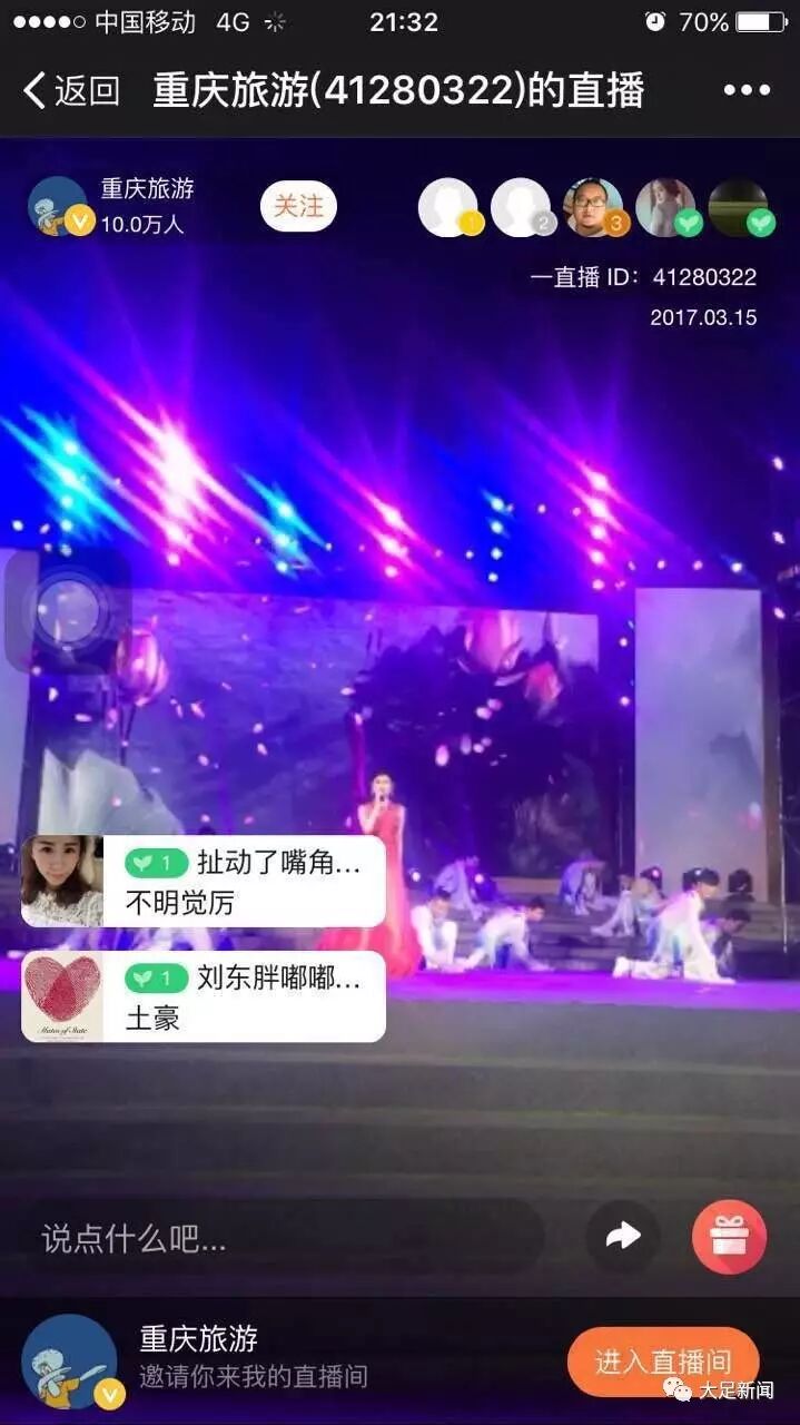在直播间内,现场精彩的节目惊呆了网友们,点赞不计其数,评论更是直接刷屏。网友们纷纷留言“传统加国际范”“厉害了大足”。
