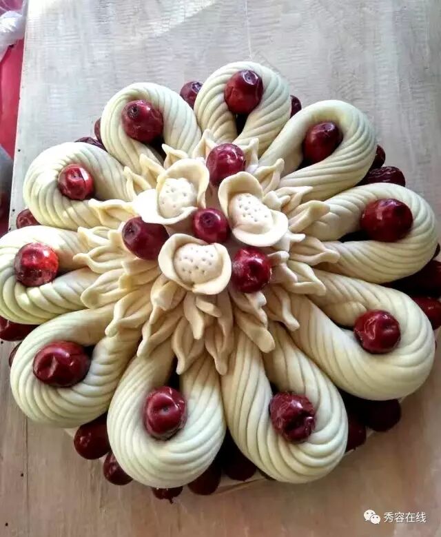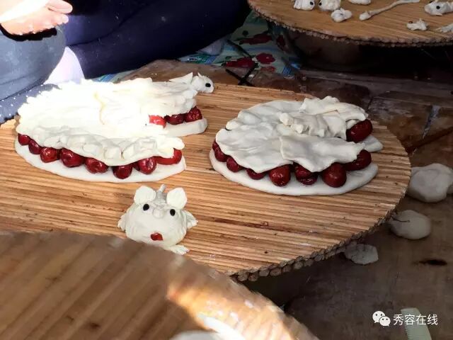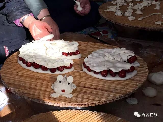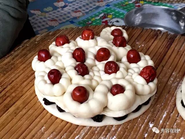 每到过年的前几天忻州的农村就开始大量蒸喜庆的馒头,特别是要蒸具有复合性功能的既是供品又是崇拜物,实质上仍是食品的花糕、枣山等面塑。拍摄于:忻府区、定襄县。