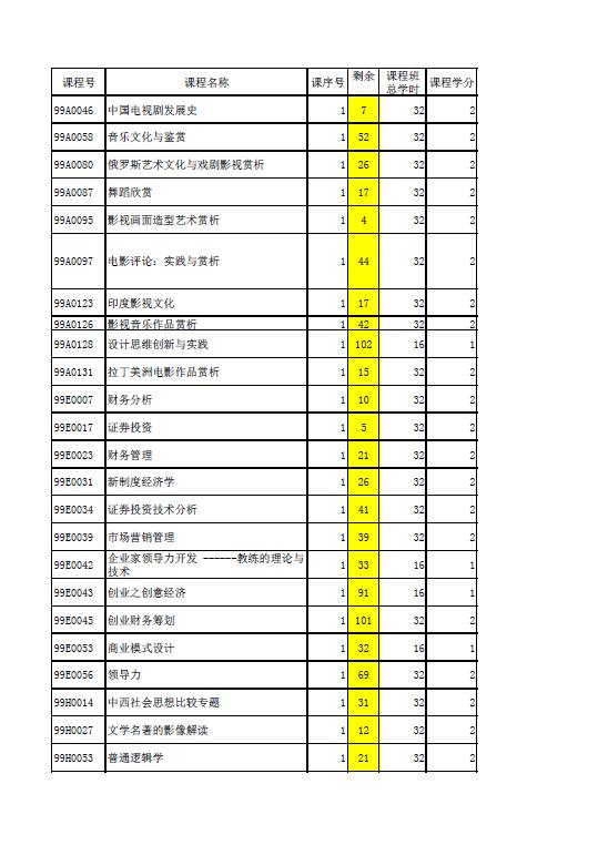 据统计,周一至周日公共选修课剩余课容量为3667人次,具体分别为: