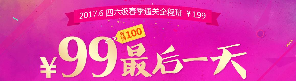 小新先插个广告!2017年6月考季四六级春季通关班99元限时抢购,