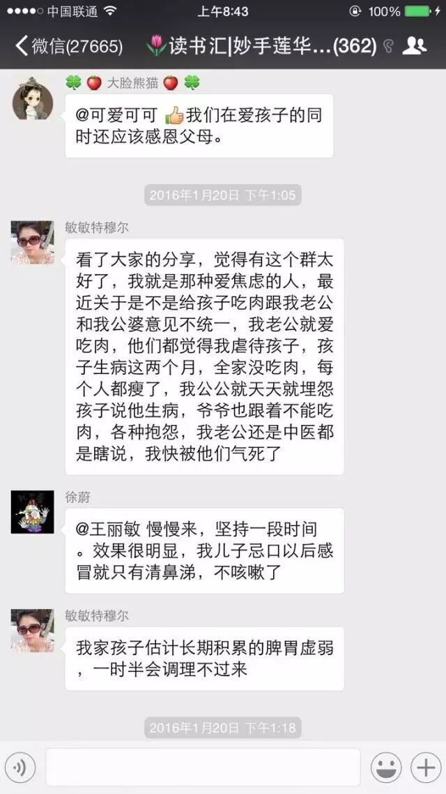 下面截取妈妈们在在线读书汇群里关于家庭氛围和孩子身心成长的经验分享,分享给大家,愿更多的妈妈打开智慧,处理好父母、婆媳、亲子之间的关系,学习中医,不仅仅学习的是方法,而是开阔我们的思维,提升我们应对问题的高度。