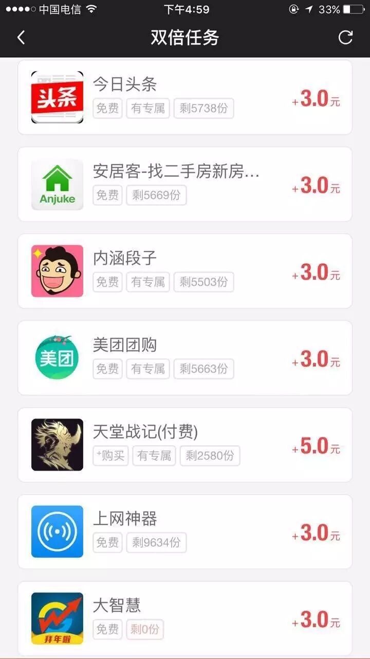 2、15到18点之间任务密集放出,加量过程中多刷新,抢到就是赚到。