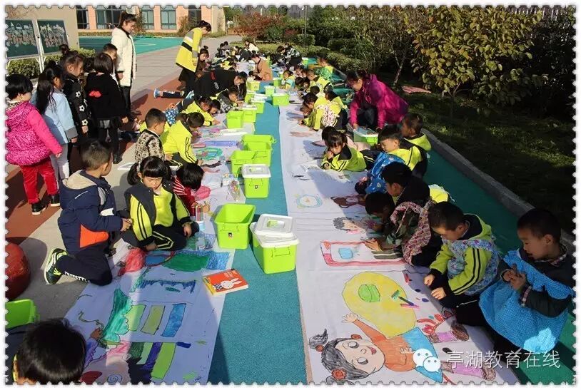 活动前,老师们通过视频、图片等形式,细心的和幼儿一起交流、分享日常的文明用语和有关礼仪文明的小故事,选好优美的轻音乐、制定好绘画规则。老师们购买了百米长布,大班全体幼儿自己检查各自的绘画工具,为集体绘画教育活动做好了充分的准备。