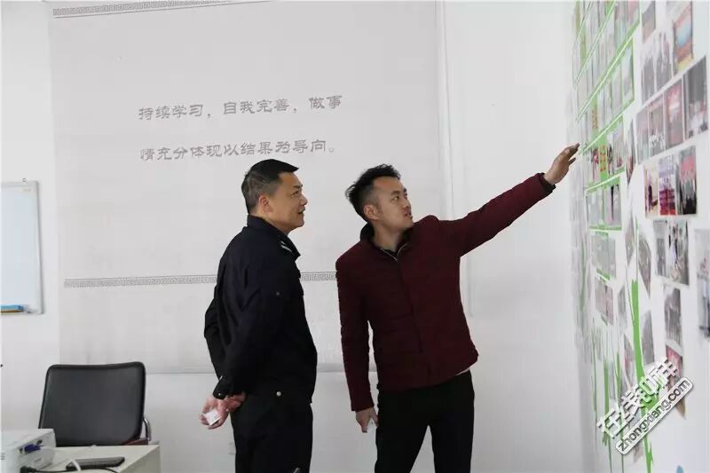 走进在线钟祥 走进在线钟祥办公室,一面文化墙吸引了大家的目光,在线钟祥CEO谭伏权向该处支部党员民警介绍了公司创建文化墙的初衷。文化墙上的照片是公司历年活动的掠影,包括新闻、公益、户外、亲子、相亲、汽车等,既向广大网友展示的公司形象,也勉励公司工作人员多创新、多实践、脚踏实地把每一件事情做好!