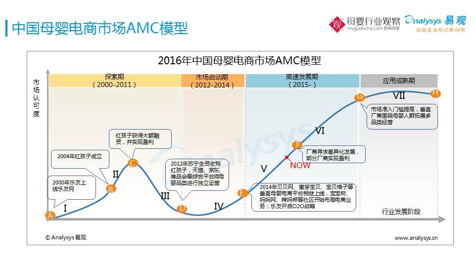 社区讲完了,我们看电商。电商跟社区比有一点点滞后。但是现在已经进入到了一个同步的阶段,社区是从1999年开始,其实2000年乐友也开始从事母婴电商的拓展。之后母婴电商高速发展,现在基本上跟母婴社区处于同步了。