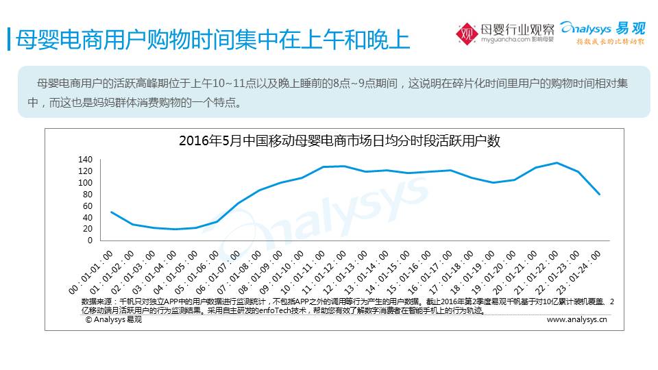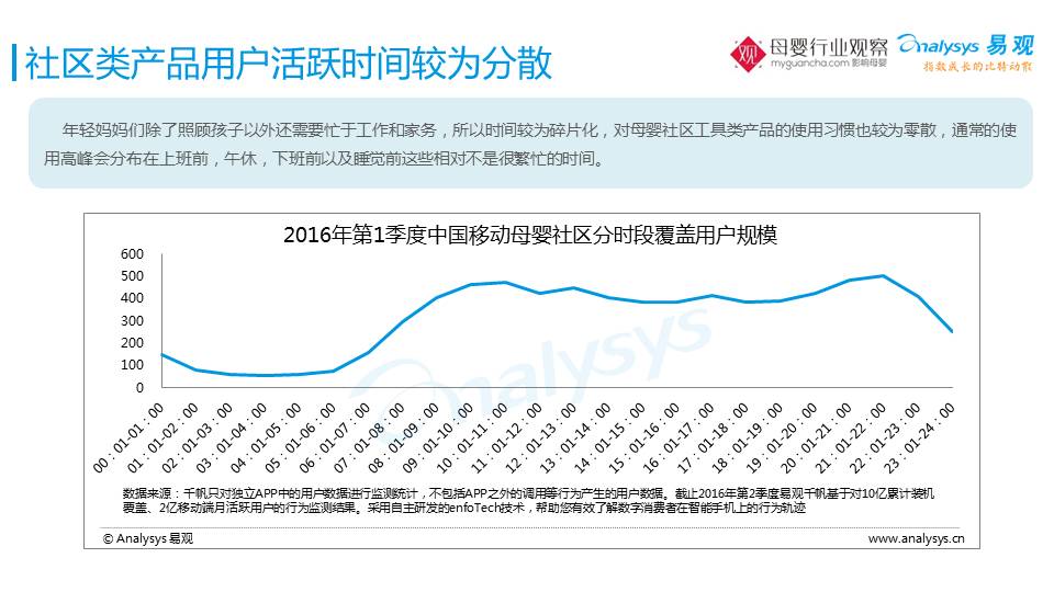 在宝宝休息的时间,比如:9点-10点的时候,是一个最活跃的期间等等。他们的活跃时间,其实也决定了我们的产品和服务到底要做什么样的推送和改进。