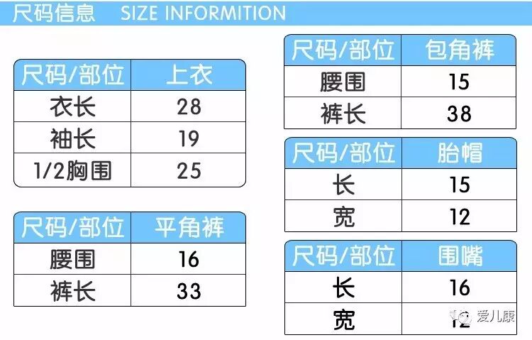 本次的新生婴儿五件套是适合3个月左右宝宝的,有三种款式三种颜色一共九套可以选择,为了方便宝妈们选择这里布丁哥哥制作了尺码表。