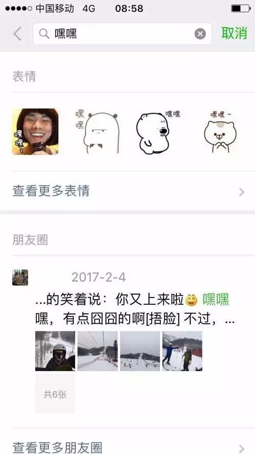 直接在微信聊天顶部点击搜索,就会自动出现如下显示。可以有针对性地搜索朋友圈的相关内容。此外,还可以单独搜索带关键词的文章、小说等。