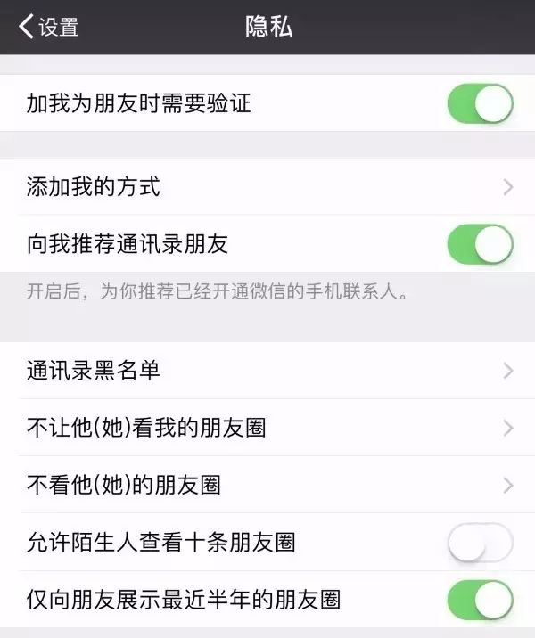 方法是:在【设置】里点【隐私】,然后找到最下面的【仅向朋友展示最近半年的朋友圈】选项就可以啦。