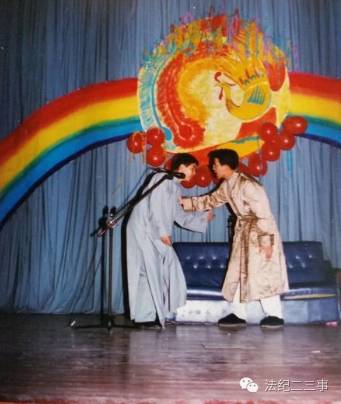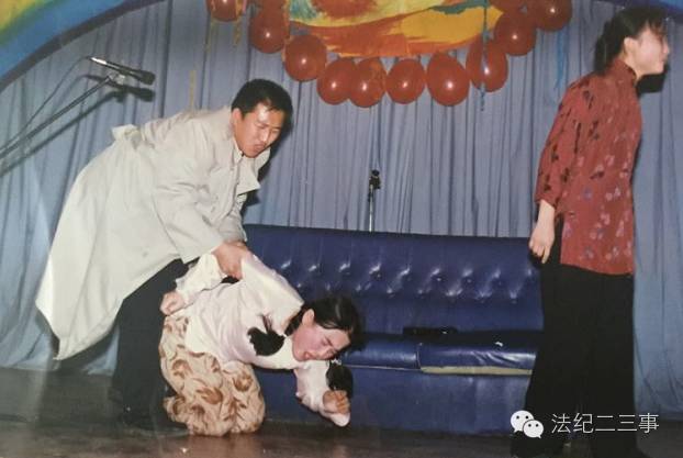 《雷雨》一战成名,印象深到连院领导都念念不忘,从此就不由得你不演,当然再演的时候,有院里支持,服装就好多了(见配图),老爷周朴园终于不用再穿得像个卖羊肉串的,有了件丝绸睡袍。这个剧第二年的新生会演过,法学院50周年庆祝晚会上演过,过程都是一样,四凤挂,周冲同挂,周萍自挂,最后法纪君神气活现地跳出来用普通话告诉老爷:“侬全家西特了!”有一次出场时还摔了个跟头,台下觉得这下摔得比较对得起观众,一片哄笑。
