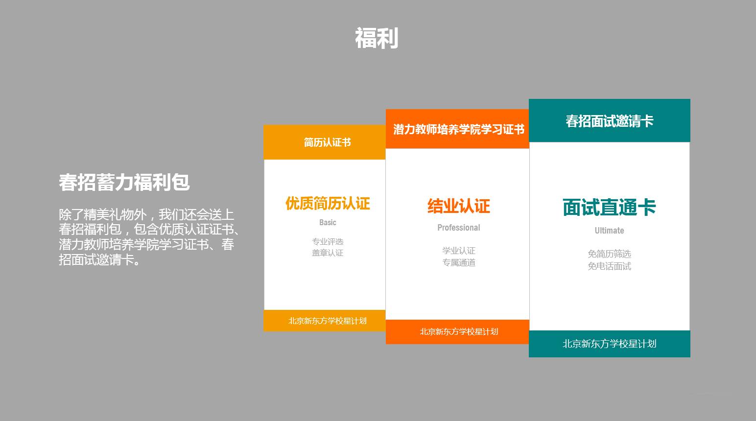 参与所有活动,除了有机会获得精美礼物外,表现优秀者还有机会获得人力资源部认证证书及春招面试邀请卡,想要赢得好offer,那就抓紧吧!