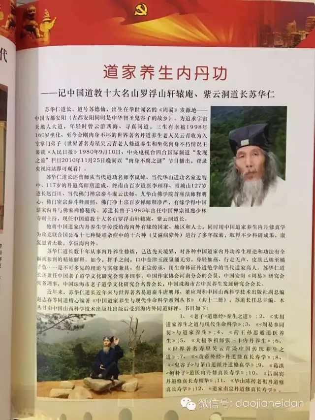 近年来,苏华仁道长近年来与世界著名易道泰斗唐明邦、董应周和中国山西科学技术出版社副总编赵志春等同道精心编著《中国与现代生命科学系列丛书》(共十二册),苏道长任总主编。本丛书由中国山西科学技术出版社出版后受到海内外同道好评。书目如下:道家养生