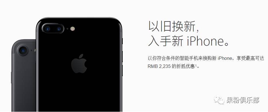 相信很多人今天都在朋友圈看到苹果的「以旧换新」广告了,以现有 iPhone 换购 iPhone 7 Plus,可享最高2235元折抵优惠。