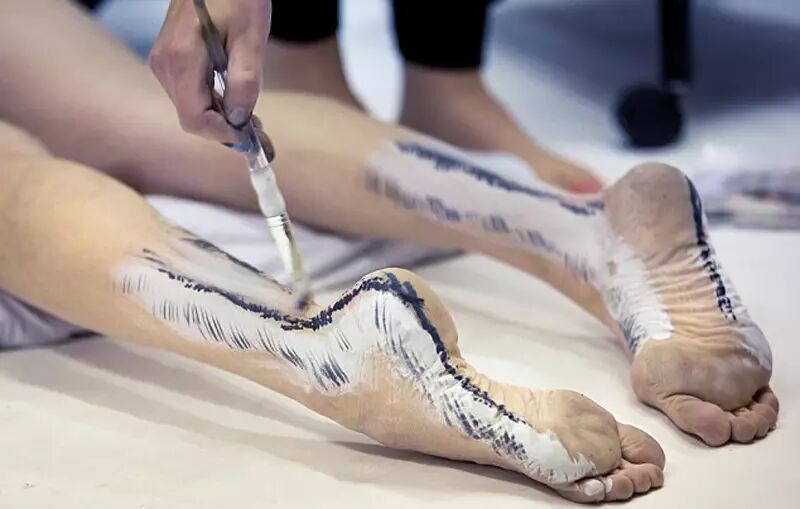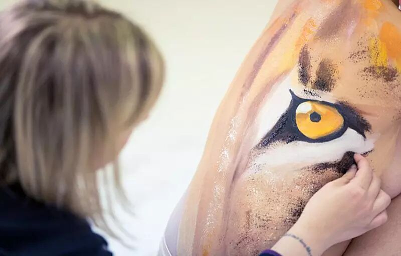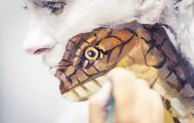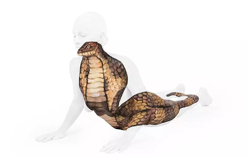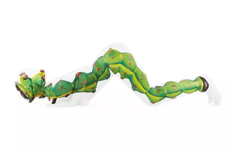 这些作品包括毛毛虫、鳄鱼以及眼镜蛇等,需要花费数个小时。费伊表示对于模特来说,在他们身体上绘制选定的图案时,保持特定姿势非常辛苦。