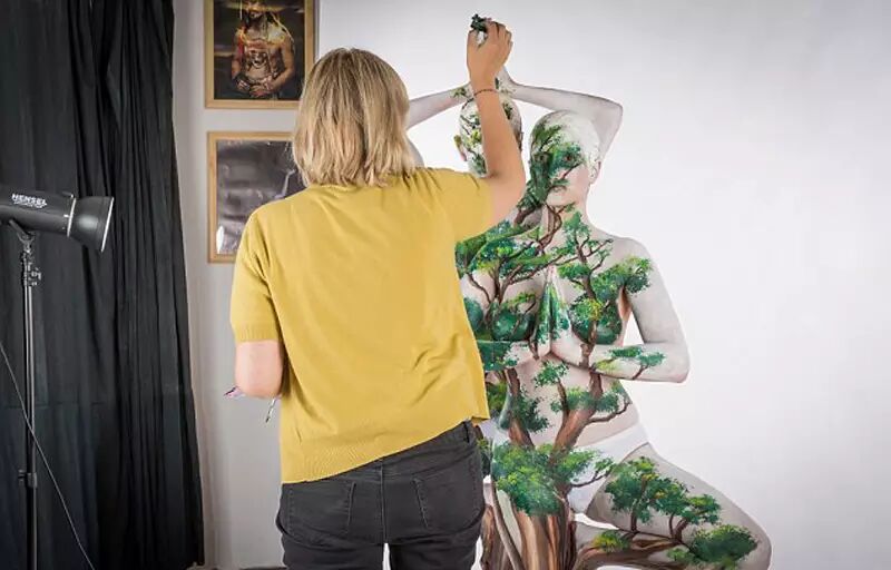 据英国《每日邮报》9月13日报道,英国莱斯特市(Leicester)29岁人体彩绘艺术家爱玛·费伊(Emma Fay)创造出许多类似动物彩绘,但仔细观看,你会发现这些作品都是她在人体上绘制的。这些模特摆出瑜伽的姿势,让作品看起来更加栩栩如生。