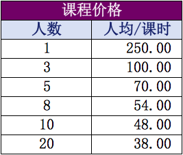 以上价格为大致示意图,适用于大课时课程,详细请参照咨询邮件。