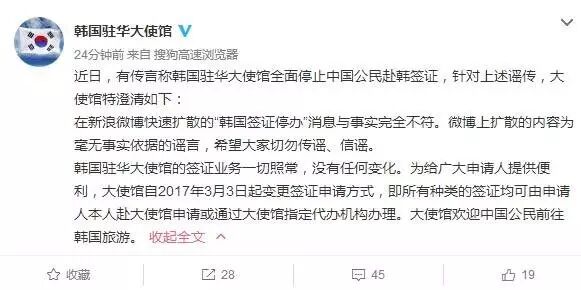 就有传言称,,:在微博快速扩散的“韩国签证停办”消息与事实完全不符。微博上扩散的内容为毫无事实依据的谣言。