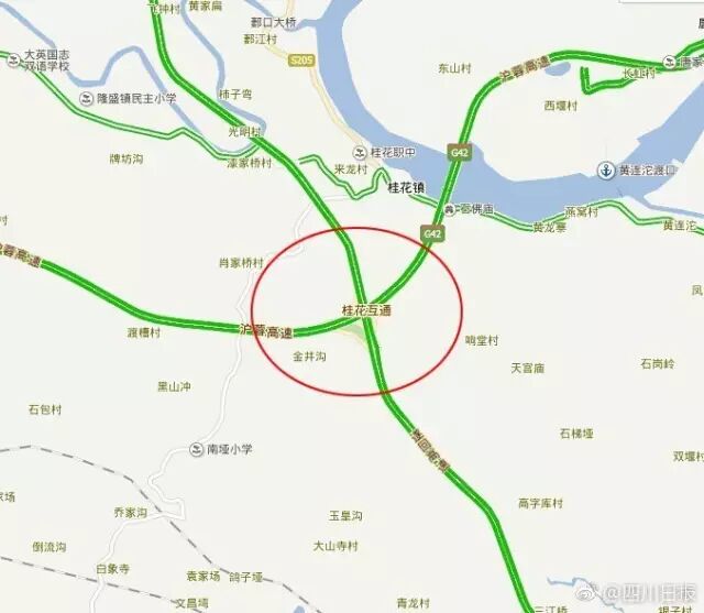 桂花立交位于遂宁市境内,是连接遂渝高速和成南高速的互通立交,是重庆经遂渝、成南一线前往成都的必经之路。桥梁无法通行预计将对重庆往成都方向车辆造成较大影响。高速交警建议,车辆可提前经复兴立交绕行至G93成渝环线高速绵遂段通行。