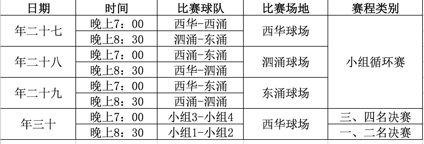 2、比赛时间:1月26日(即年二十九)晚上7:30
