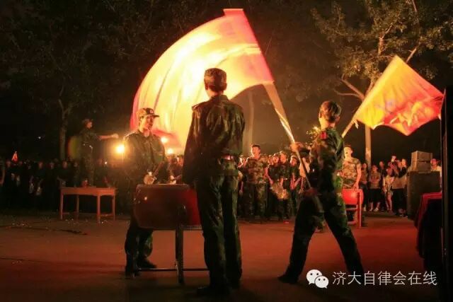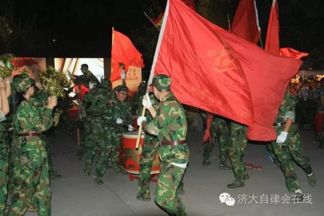 “红旗擎天地,歌唱我青春”,可微信关注“济大自律会在线”了解最新比赛情况。