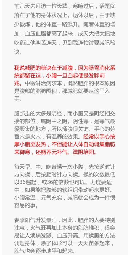 很多有便秘的人不喜欢吃药,有的吃药就好,不吃药病情就又回到起点,形成了依赖。其实可以试试揉腹,让身体恢复自身的功能。