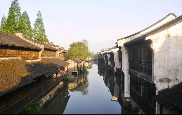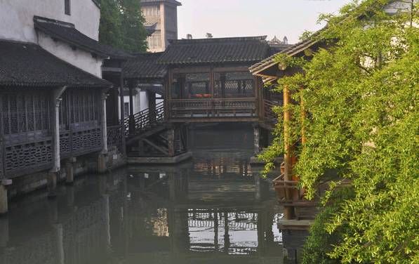 镇内小河纵横,蜿蜒曲折,临河而起的水阁木楼,绰影幢幢,小桥轻卧,杨柳依依,整个水乡的格调浑然一体,宛若天成。