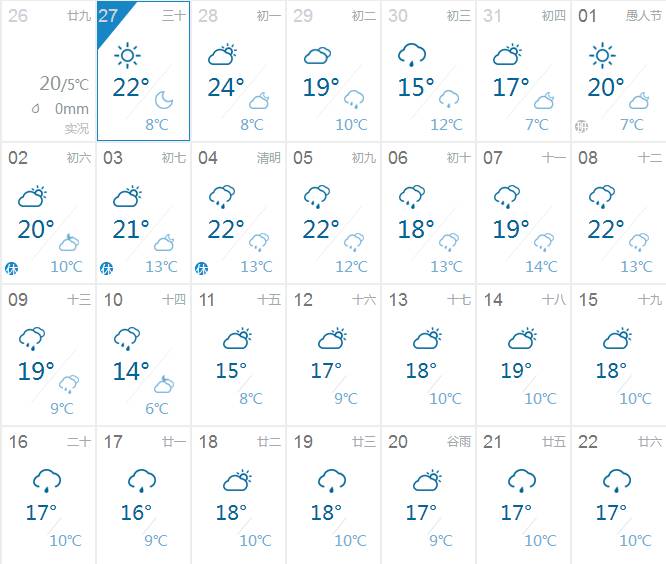 根据天气预报,今明两天,阳光将持续在线,晴朗升温会成为主旋律,气温将达到22℃。不过晴朗升温之路并非一帆风顺,周四起,一波雨水降临,持续两天左右,气温将有所下降,高温跌至17℃。本周六一直到清明小长假之前,又是晴好天气。