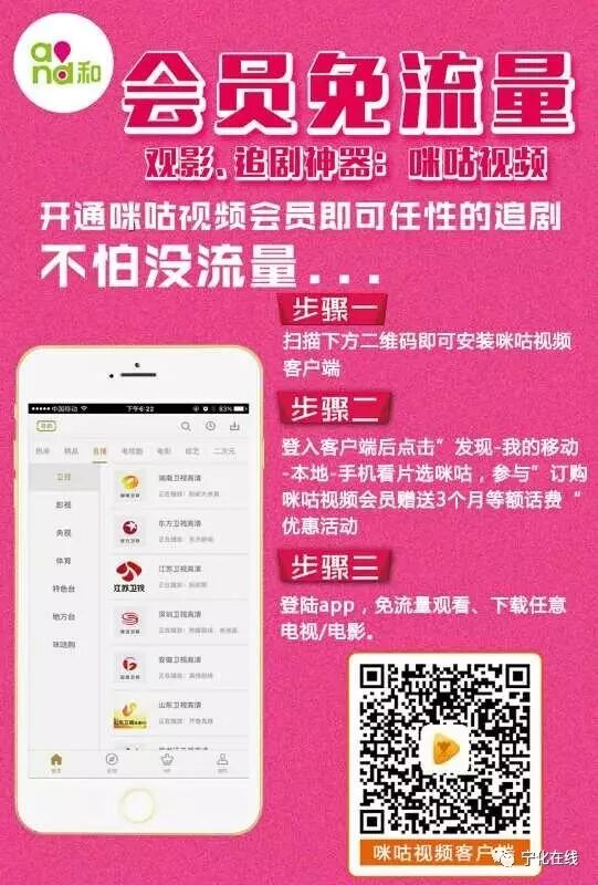 扫描下方二维码就能下载咪咕视频APP,首次注册并登录,我们还送你100M省内流量1个月哦!