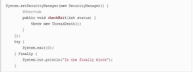这段代码为什么会输出In the finally block?为什么没有打印出堆栈跟踪信息呢?