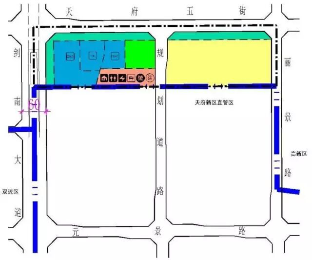 昨日(9月27日),天府新城南区大源西组团局部用地控规优化方案进入公示阶段。此次优化规划范围西至剑南大道,东至规划丽景路,北至规划天府五街,南至天府新区直管区区界,总用地面积约90990平方米。据了解,此次优化主要是为了推进地铁5号线建设,新增用地建设5号线专用110kv变电站,因此将原控规供电用地(220kv变电站)划出4370㎡用地作为110kv变电站,并将原控规中居住、商业混合用地约3757㎡调整为供电用地(地铁5号线专用110kv变电站)。