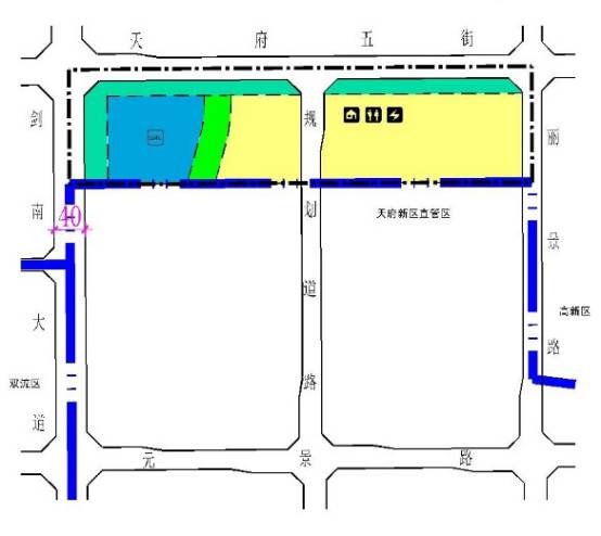 ▲据天府新区规划建设局描述,优化范围大致在红线区域内,五角星位置为地铁5号线专用110kv变电站所在地。此外还将原控规中部分居住、商业混合用地(约1156㎡)与西侧公园绿地约4128㎡整合为一个公园绿地,用地面积约5284㎡,并调整至天府五街与规划道路交叉口西南侧。将原控规中居住、商业混合用地约6469㎡调整为服务设施用地,并增配综合运动场、农贸市场、社区公交集中停靠站各一处。原控规道路左侧居住、商业混合用地中的用房、公测、开闭所被调整到服务设施用地内。原控规剑南大道道路红线由40m调整至60m。调整之后,原居住和商业混合用地将缩减11382㎡,变电站用地增加3757㎡,绿地公园用地增加至5284㎡。