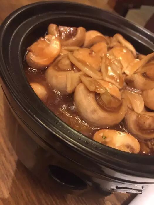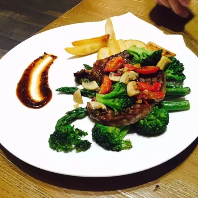 有中式炒菜和西式烧烤,石锅焗口蘑,是店里的头牌~锅子很可爱~口蘑切片炖的很嫩,很适合不喜欢吃肉的朋友~菌类也是减肥佳品~