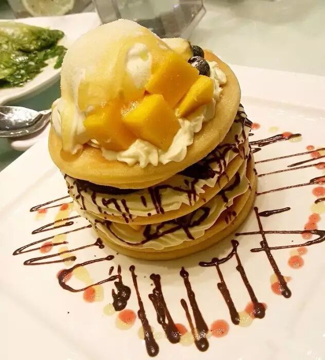 透明的玻璃天窗。感觉把你罩在一个玻璃房里,侧面就是超级美的海景。听着浪拍打的声音美极了。小蛋糕是这里的特色,每天都做的不一样的,装盘会手动画上吊灯啊之类的小装饰,不仅颜值超高,口感也很松软,入口即化~