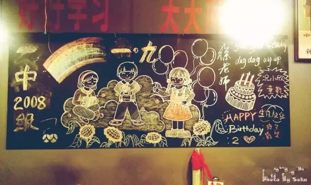 都是学生时代的样子,餐桌就是课桌,桌牌写的是学科名,点餐单是自己设计的练习簿,墙上挂着黑板,上面是漂亮的黑板报,电视里播放的是葫芦娃,满满的回忆有木有,感觉又回到小学了……