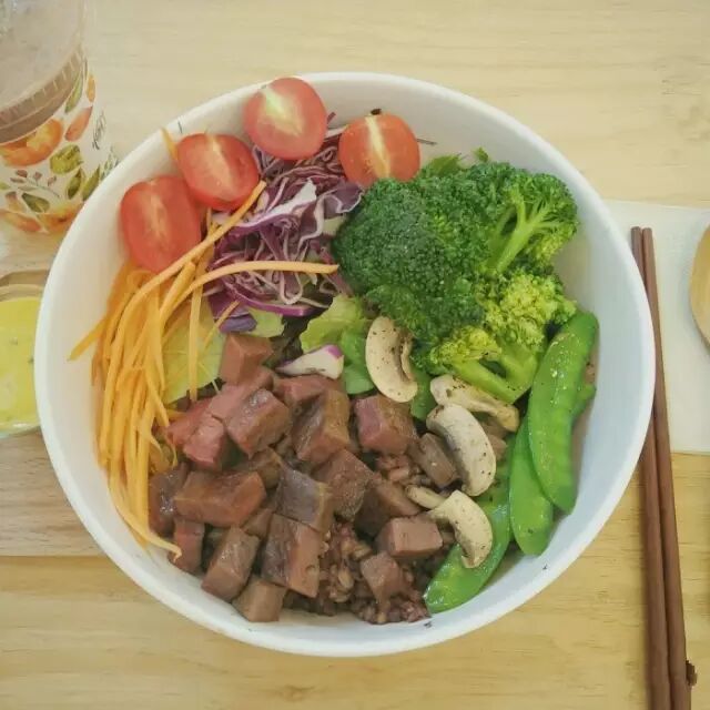 主旨是纤体+轻体,蔬菜+减压。每种都是满满的蔬菜+水果+谷物,当然还有荤食——肉。区别是【增肌】里面是牛肉,而【纤体】里面是鸡肉,一大碗吃下去,真是吃得又饱味道又足还不用担心热量超标的那种,而且从此也不需要担心减肥只能狂啃草了~