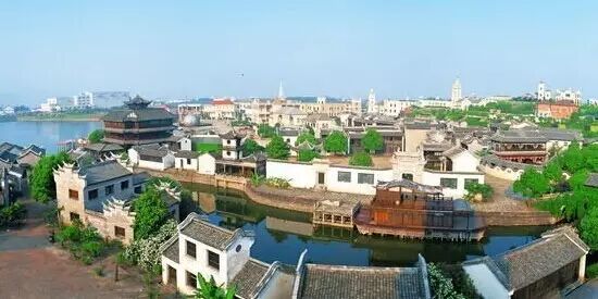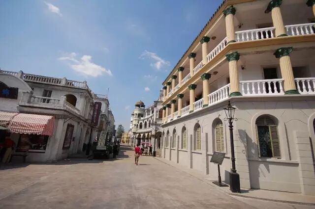 广州街是于1996年8月为拍摄历史巨片《鸦片战争》而建;古朴的街巷点缀着“花城”,交错的河汊流入“珠江”,